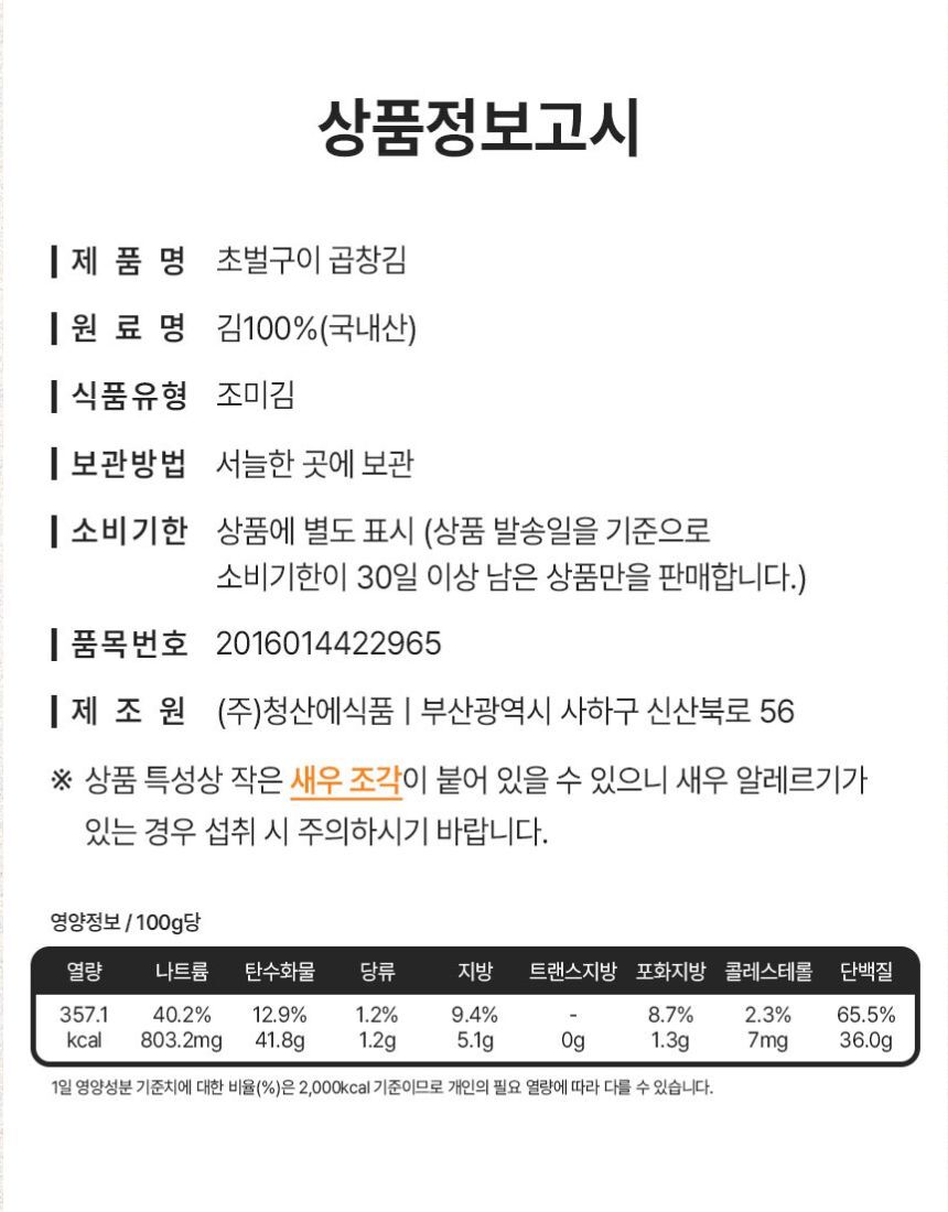 구수한 밥도둑 ! 곱창김 50매